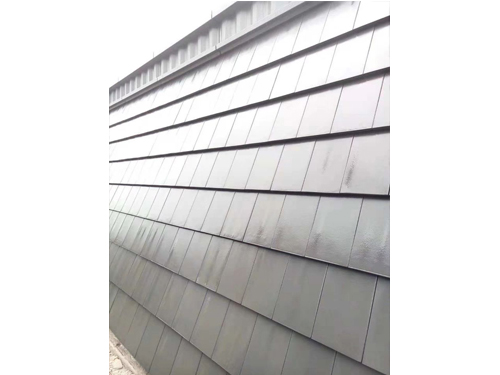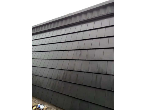 (3)底瓦无搭接不漏水/按屋面整瓦垄长度,作为长条式压制成型,保持陶土瓦之片叠状效果,片间均匀之度则优于陶瓦。金属铜瓦的一垄一长条造型,无搭接、无缝,解决了陶土底瓦片片叠接成垄,片间之搭接缝时逢大雨难灌漏水的难题。